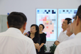 温文星一行参观了科前生物研究院和智能化GMP生产车间,详细询问了公司产品的自主研发、销售服务与推广使用情况。工作人员引导温文星一行参观了研究院各中心、实验室,通过大屏幕汇报展示了公司生产管理系统、纯悬浮生产和纯化系统、自动灌流培养系统的载体反应器、自动化配液及在线过滤系统、乳化分装和冻干分装系统等重点生产工艺环节和智能化生产设备相关情况。