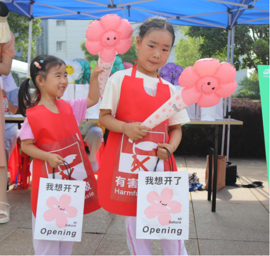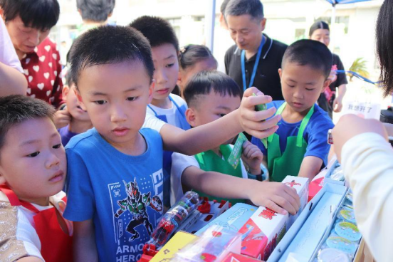 上午八点半,家长和孩子们陆续来到国旗广场,在签到处签到后领取环保套装、定制小围裙以及小玩具作为见面礼。