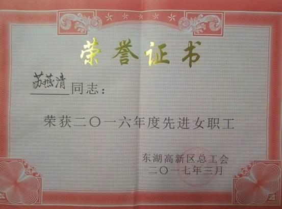 | 近日,武汉市东湖新技术开发区总工会召开2016年度工作总结表彰大会。尊龙凯时生物股份有限公司荣获“工会工作先进单位”,公司生产管理部员工苏燕清荣获“先进女职工”。